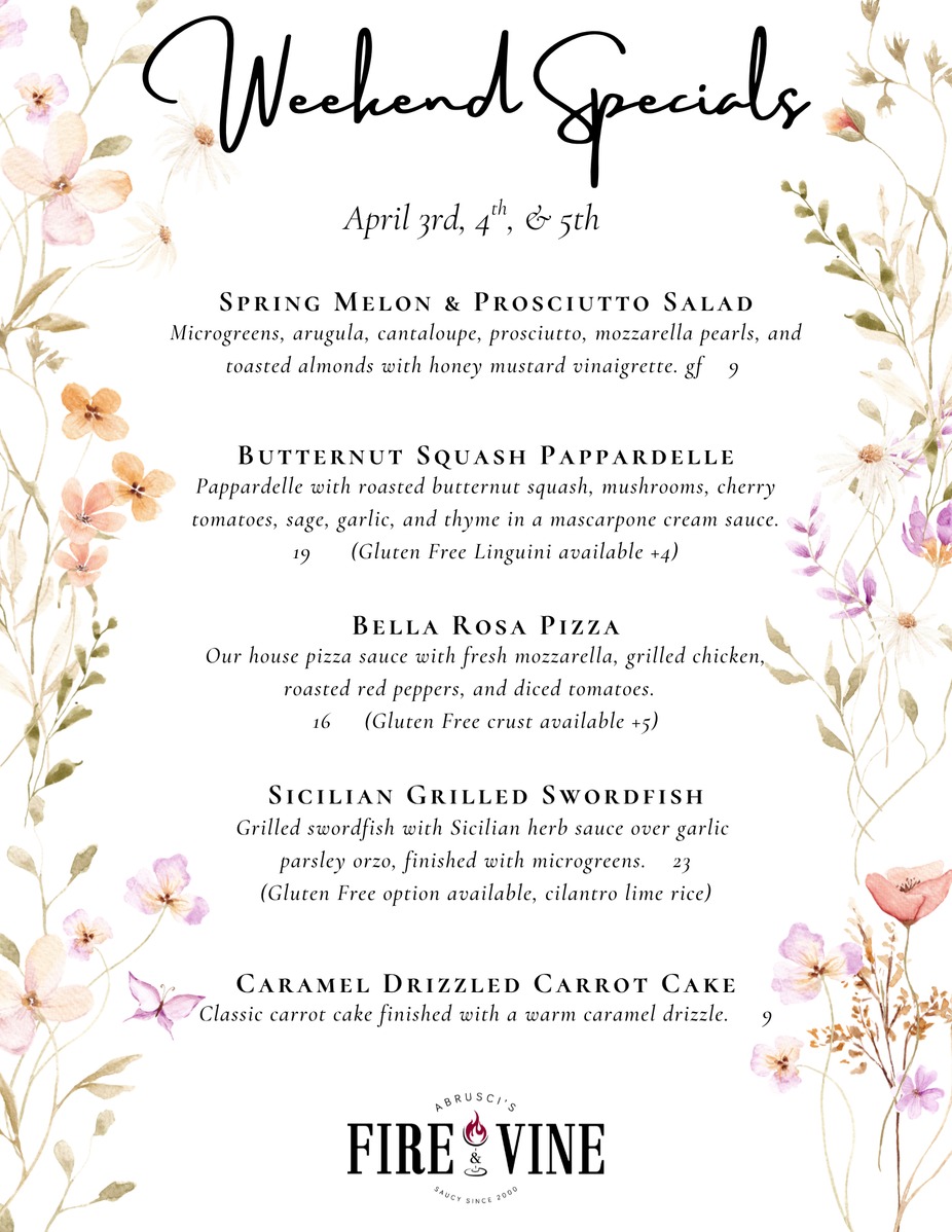 Easter Weekend Dinner Specials