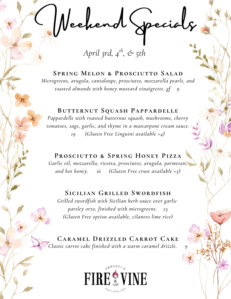 Easter Weekend Dinner Specials