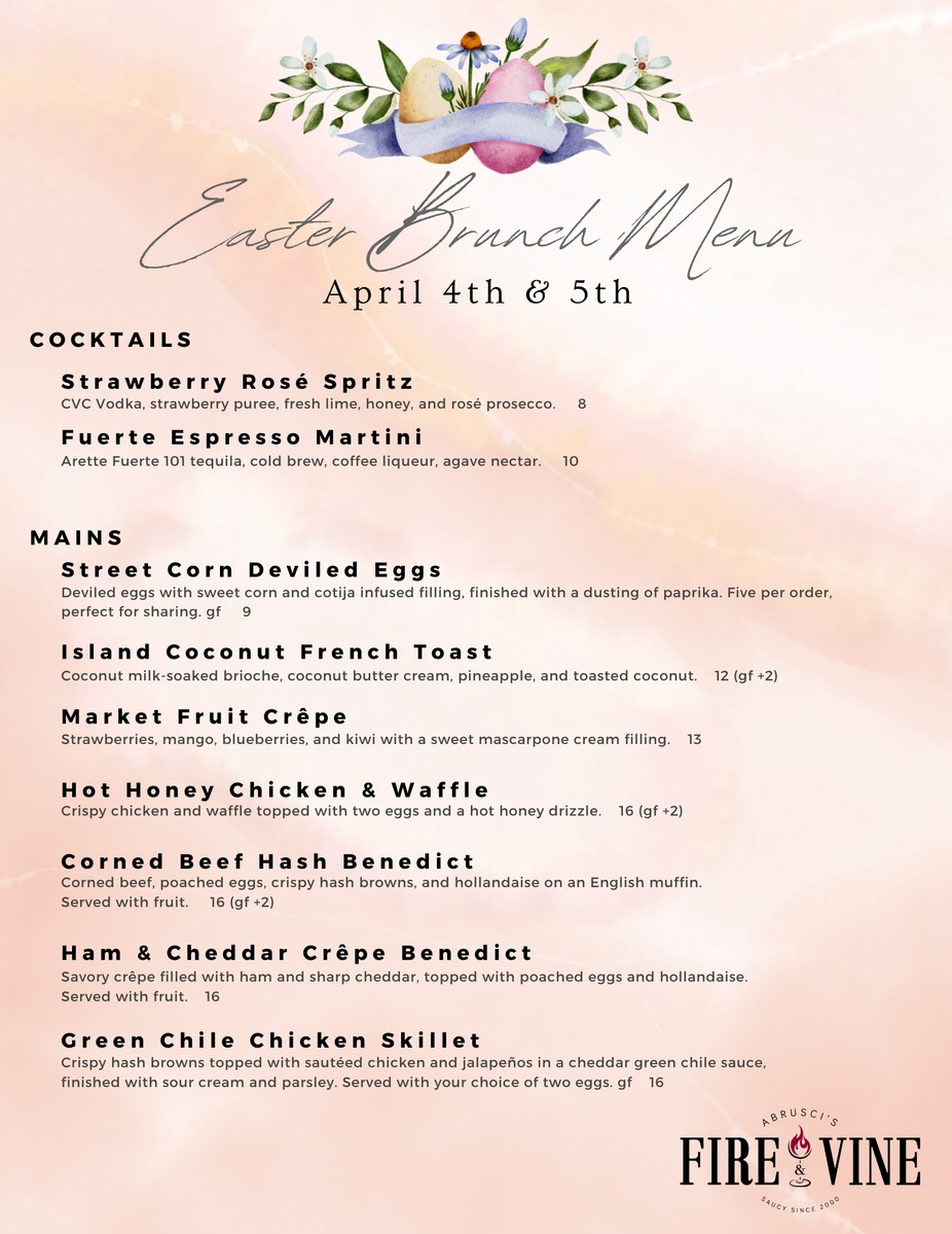 Easter Brunch Specials Menu